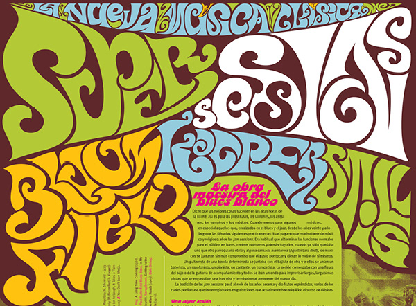 Design for La Mosca en la Pared magazine, spreads, cover and single pages with rock and alternative culture topics.